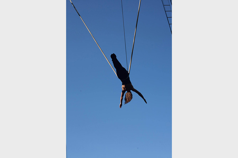 Bristol Harbour Festival had the pleasure of premiering Freya’s new ‘Light-hearted’ Cloud Swing act. She took to the stage already defying gravity as helium balloons made her hair stand on end, floating up to her swing she proceeded to performing intricate aerial acrobatics to free the balloons. It was the perfect setting for her new ‘light-hearted’ piece.